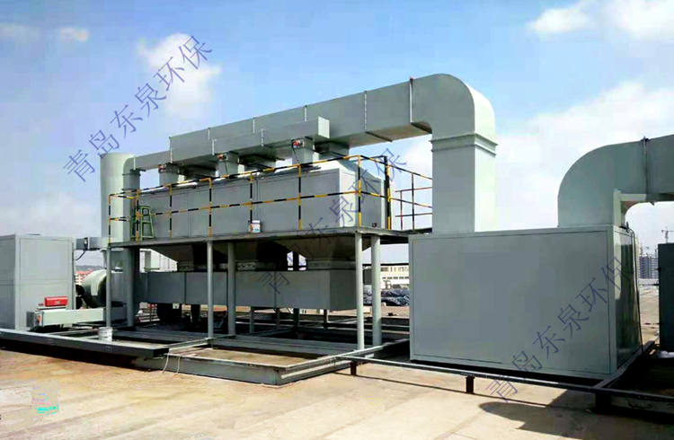 漆霧廢氣催化燃燒設(shè)備針對中低濃度廢氣,利用吸附-催化燃燒工藝進行回收凈化的過程如下:有機廢氣經(jīng)去除粉塵等預處理后,進入裝有高效吸附劑的吸附器,空氣得到凈化。隨著吸附的進行,吸附劑逐漸達到飽和,在與高溫熱空氣的接觸過程中,有機廢氣被脫附下來形成高度濃縮的廢氣,同時吸附床得到再生。再生后的吸附床又可進行吸附作業(yè)。經(jīng)脫附形成的濃縮廢氣進入催化燃燒器,生成二氧化碳和水達標排放。