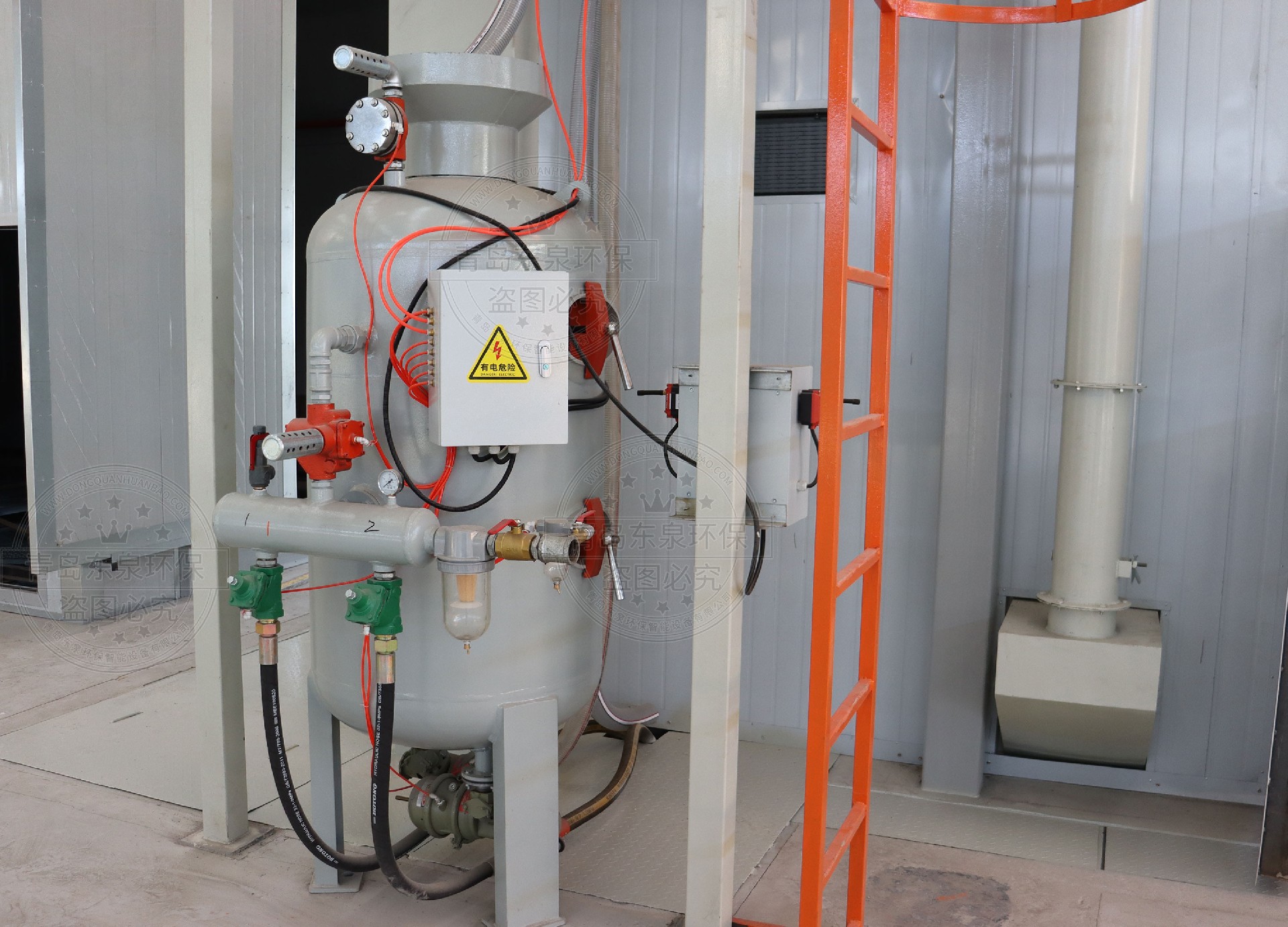2)噴砂設(shè)備采用1臺我公司生產(chǎn)的壓入式高效噴砂機(jī),具有高效率、大容量、寬工作壓力范圍(可在0.6-0.75MPa的壓力范圍內(nèi)正常進(jìn)行噴砂作業(yè))、噴砂參數(shù)可任意調(diào)節(jié)(工作壓力、砂流量以及助推流量都可進(jìn)行無級調(diào)節(jié))以及性能穩(wěn)定可靠等特點(diǎn);
