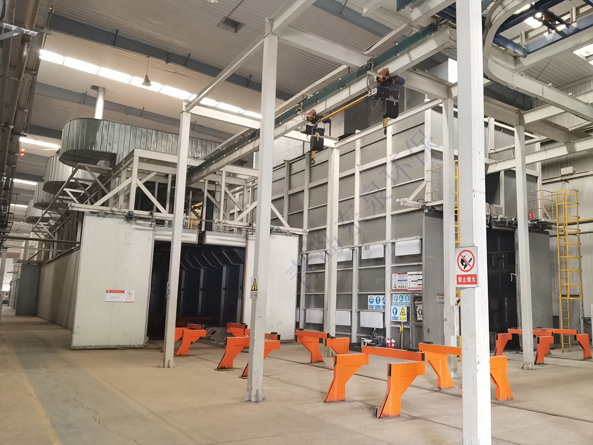 噴漆時(shí),送、排風(fēng)機(jī)聯(lián)鎖,先送風(fēng)后排風(fēng)。噴漆室設(shè)有可燃?xì)怏w濃度報(bào)警裝置,濃度超過設(shè)定時(shí)自動聲光報(bào)警。